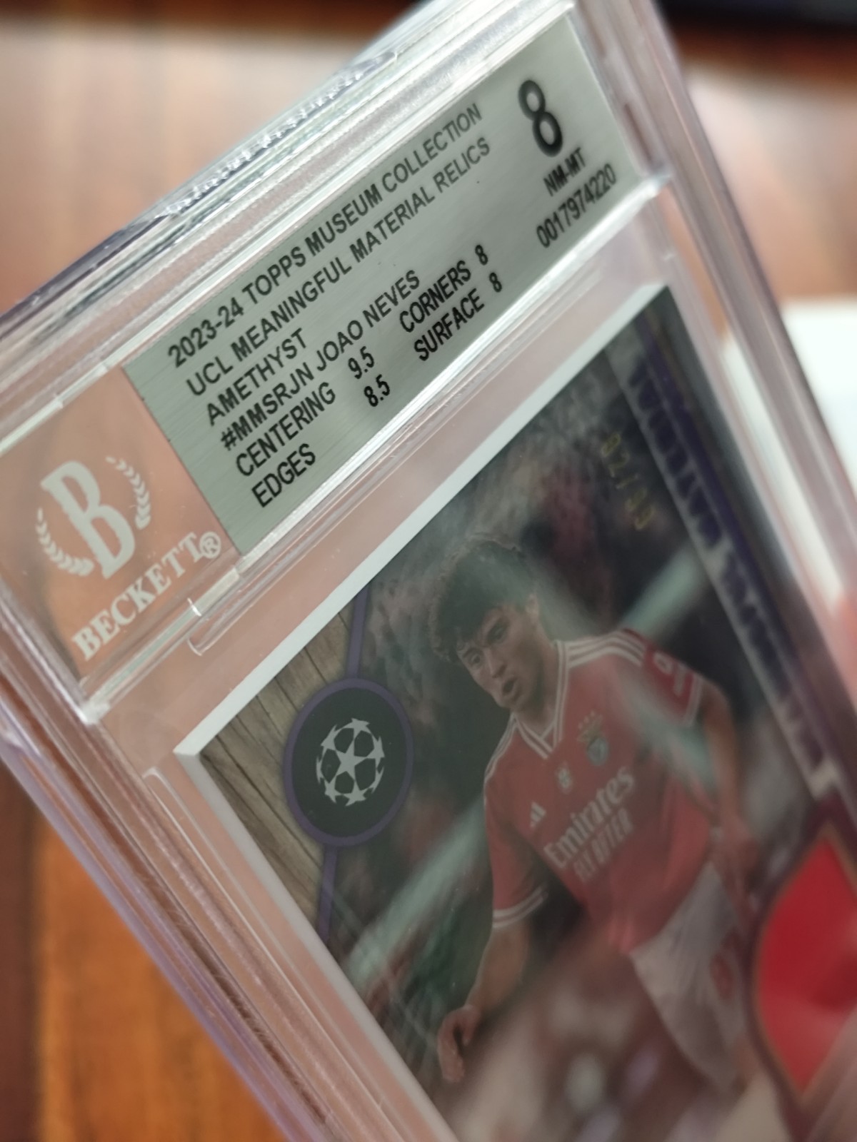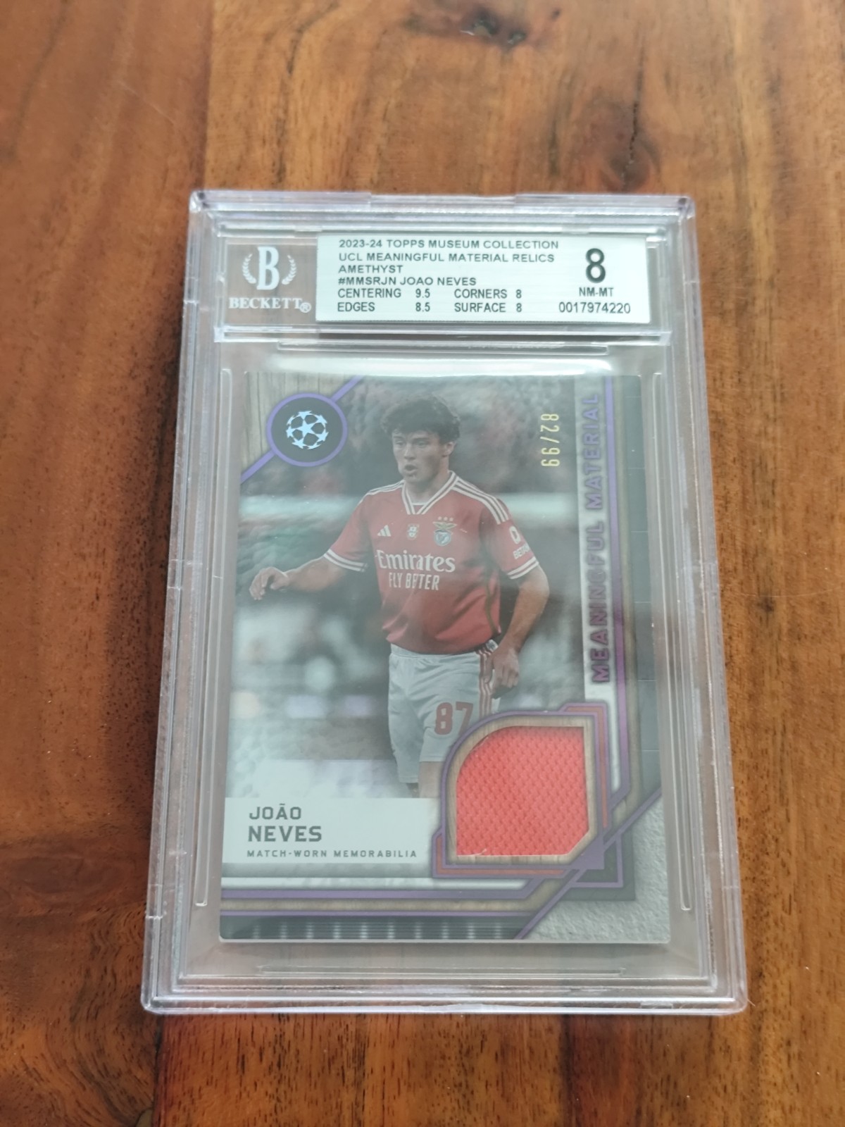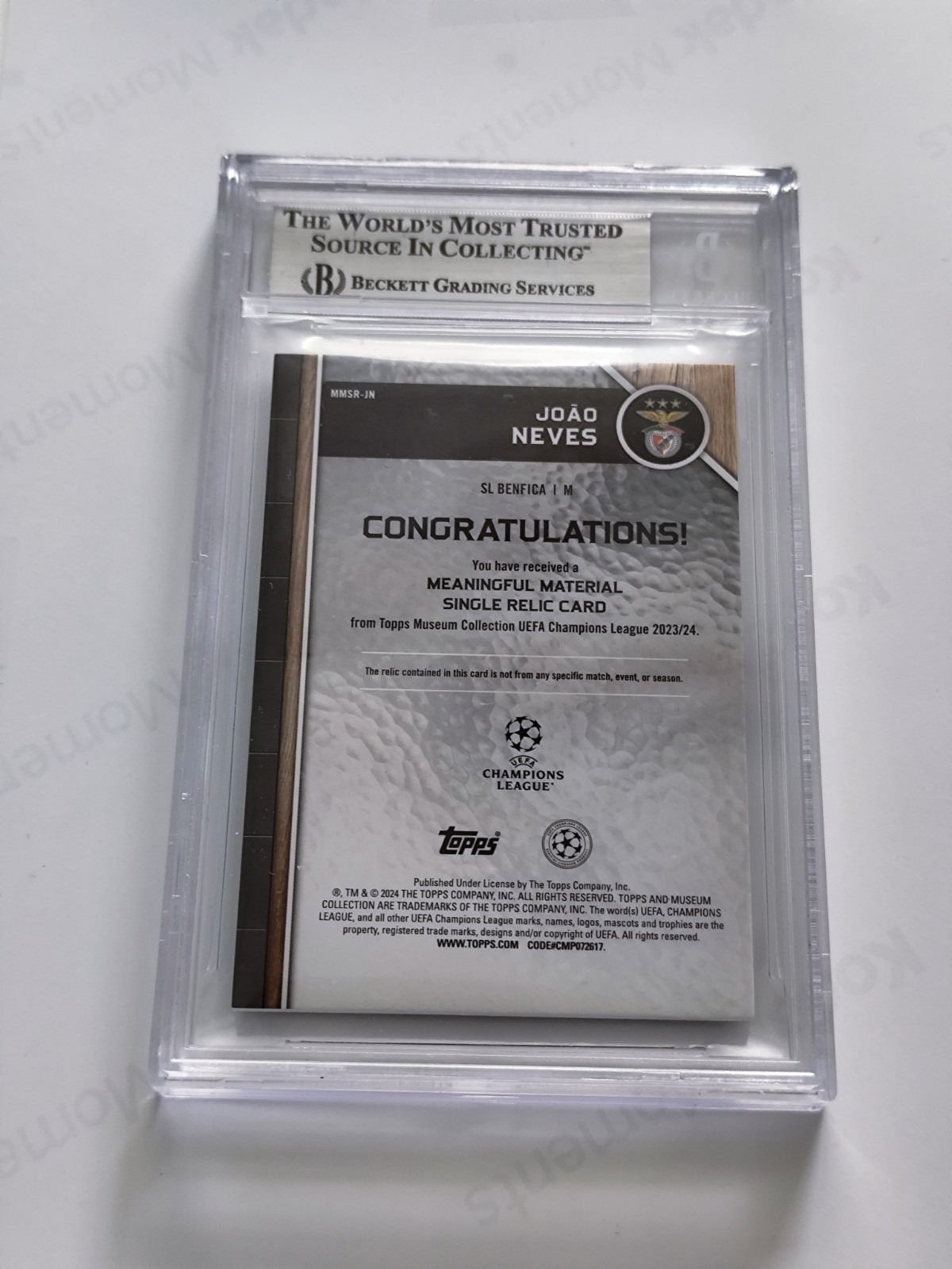 Erleben Sie die Faszination des Fußballs mit der exklusiven Topps Museum Meaningful Material Sport Trading Card von Joao Neves. Ein wahres Sammlerstück aus der Saison 2023-24, limitiert auf nur 99 Exemplare weltweit, bietet diese Karte ein Stück Spieltrikot, das die Erinnerung an ein spannendes Match verschweiert. Als Teil des renommierten 24 Topps Sets, repräsentiert diese Karte die Leidenschaft und den Geist des Fußballs durch ihren herausragenden Zustand, bewertet von Beckett Grading Services (BGS) mit einer beeindruckenden Grade von 8. Vereint diese Karte die Liebe zum Detail mit der Hingabe zum Sport, indem sie ein authentisches Memorabilia des beliebten Spielers Joao Neves aus seinem Engagement in der AFC Champions League präsentiert. Als ein Highlight für jeden Fußball-Enthusiasten und Sammler von Sport Trading Cards reflektiert dieses Sammlerstück die Qualität und den Ruf von Topps sowie die sportlichen Erfolge von Benfica.