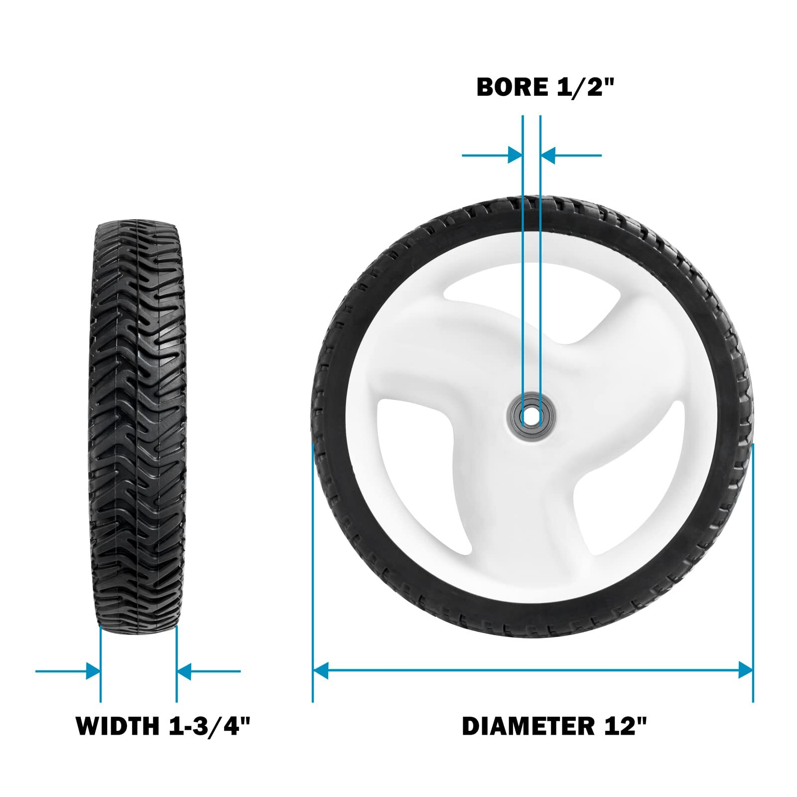 REPLACES OEM: Rear Wheel Toro 105-1816 FITS MODELS: Toro 22" Recycler,205-268 Rear Wheel Toro 105-1816, 20012, 20016, 2002-2005, and 20019 Lawn Mower Bore: 1/2", Wheel Size: 12", Hub: 1 3/4" Rear 12" X 1 3/4" Plastic Wheel Set of 2 , Perfect designed to fit OEM Customer satisfaction is our tireless pursuit. If you have any problems, please contact us at any time. We will ensure your 100% satisfaction