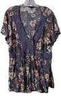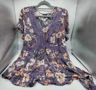 Torrid Babydoll Shirt Size 2 Gauze Crochet Inset Lace Up Top Purple Floral Boho