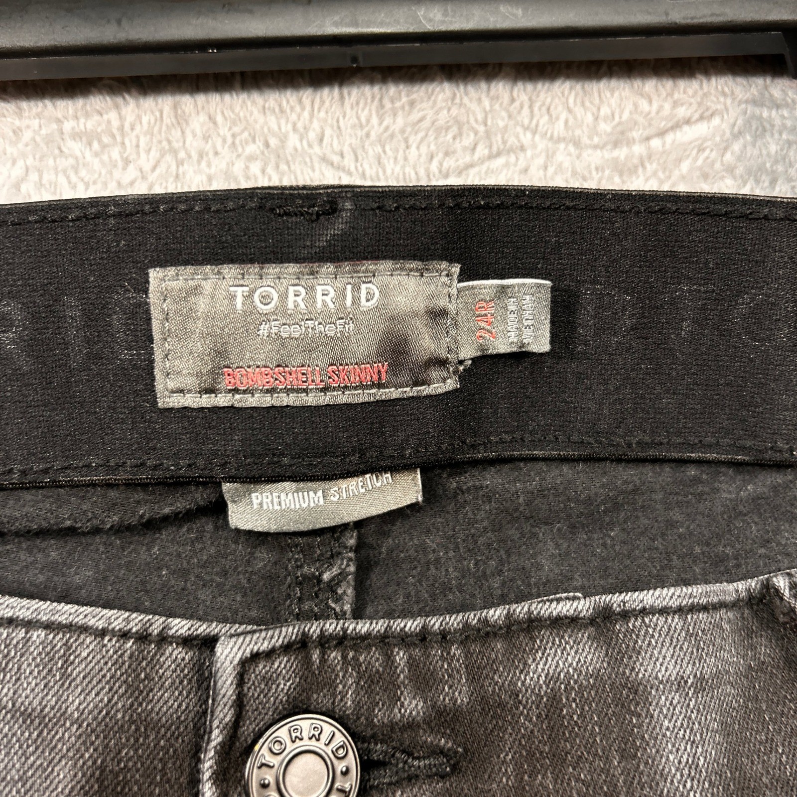 Discover your perfect fit with these Torrid Bombshell Skinny Jeans. Crafted with premium stretch denim, these jeans offer exceptional comfort and a flattering silhouette that moves with you. The classic black wash is enhanced with stylish distressed details at the knees, adding a touch of edgy character to your look. Designed for a smooth, sculpted fit, these jeans are ideal for everyday wear or for a night out. Measurements: • Waist: 42 in • Inseam: 28 in • Rise: 9 in • Size: 22R Style: Skinny Department: Women Fabric Wash: Charcoal Wash Waist Size: 42 in Type: Jeans Accents: Ripped Features: Pockets, Stretch Fit: Slim Pattern: Solid Rise: Mid (8.5-10.5 in) Fabric Type: Denim Inseam: 28 in Material: Cotton Blend, Spandex Closure: Zip, Button Theme: Punk Season: Fall, Summer, Winter, Spring Keywords: Torrid jeans, skinny jeans, distressed denim, black wash jeans, premium stretch, curvy fit, plus size fashion, casual style, everyday wear, night out, comfort fit, denim pants, fashion jeans
