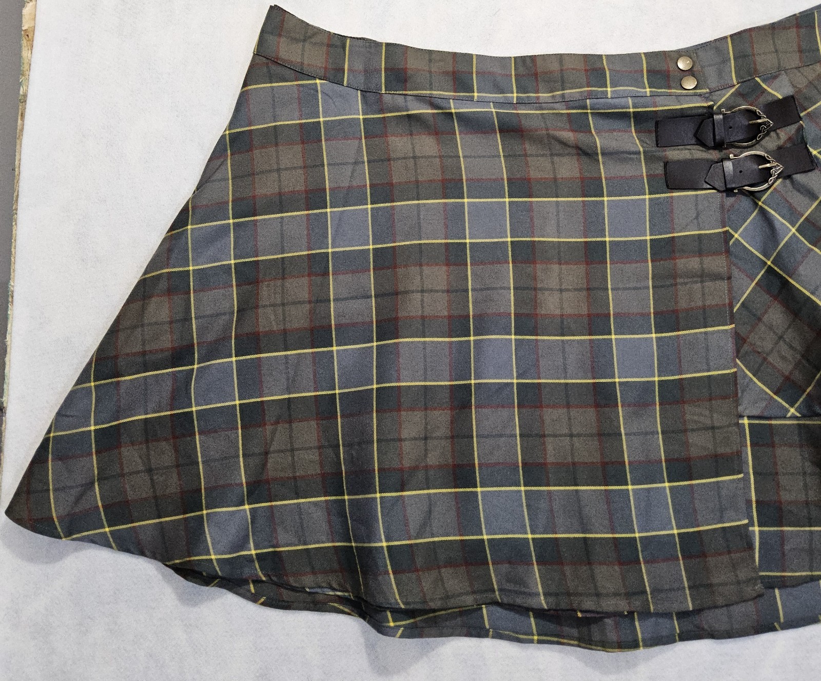Torrid Outlander Skirt 30 5X 6X Fraser Tartan Plaid Plus Scottish Celtic Gray Size: 30 MEASUREMENTS Waist: 25"" Total Length: Approximately 21" Fabric Content : see the last picture Features: 2 layers, ruffles, buckles, stretch Main Colors: gray, yellow, rust Closure: side zipper,2 snap buttons Condition: Excellent I will always mention any issues with condition Style Inspirations: outlander t v series, scottish, celtic, punk, goth, steampunk, costume