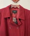 Elevate your wardrobe with this stylish and versatile Torrid women's coat. Made from a combination of wool, polyester, and spandex, this double-breasted button-up peacoat in a beautiful burgundy color is perfect for any occasion, be it travel, casual outings, or business meetings. The coat features a pleated design with a collared neckline and long sleeves that add a touch of elegance to your overall look. The coat is also lined with polyester and has insulation material made of polyester that keeps you warm in chilly weather. It has pockets that are both functional and stylish, making it an ideal choice for plus-sized women who want to stay comfortable and fashionable. This peacoat is a classic and colorful addition to any wardrobe, making it a must-have for Torrid women's clothing enthusiasts. Length: 31 inches. Chest: 25 inches across laying flat.