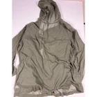 Lightweight olive green utility jacket features a semi-sheer fabric with a hood and an adjustable drawstring waist for a customized fit. Designed with roll-tab long sleeves and front flap pockets, this versatile piece offers a relaxed silhouette perfect for layering. The open front design and breathable material make it an ideal choice for transitional weather or casual everyday wear. Measurements: • Pit to Pit: 22.5" • Length: 30" Torrid 0 is equivalent to a standard a large.