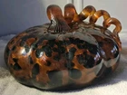 Tortoise Shell & Glitter Art Glass Hand Blown Pumpkin Swirled Stem with glossy finish and glitter details make this piece a standout addition to any collection. Measuring 5.5 inches in height and 9 inches in width, this contemporary original is an ideal size for display. The artist is unknown, but the quality of this sculpture is undeniable. Whether you're a fan of art glass or simply love unique and eye-catching decor, this pumpkin is sure to impress. Beautiful piece to add to your collection. Please see all photos. Buyer pays shipping. Please see my other items. Thank you.