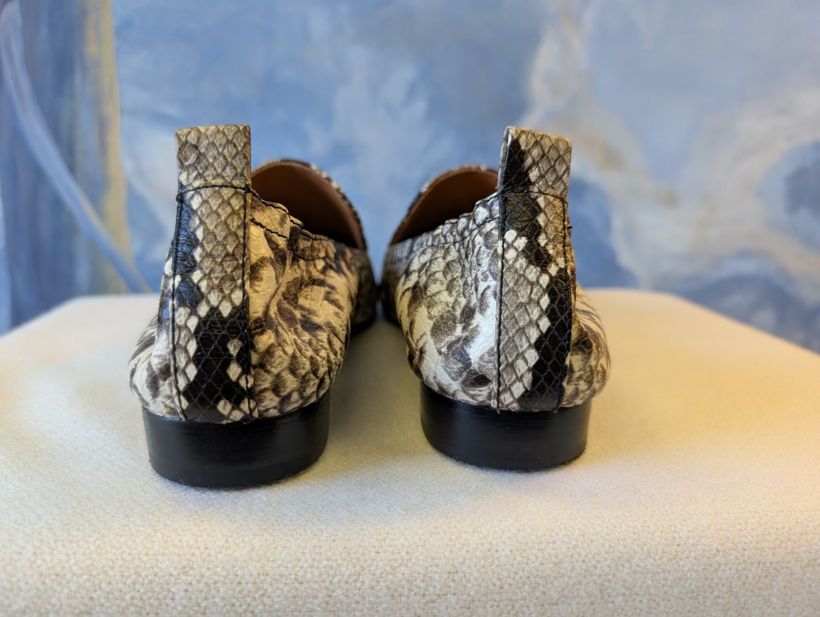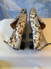 The Tory Burch 8 Kira Python Elastic Back Leather Loafer is a stylish and versatile flat shoe for women. Featuring an almond toe shape and slip-on closure, these loafers are perfect for various occasions including travel, casual outings, and business meetings. The leather upper and lining, along with a cushioned and lightweight design, provide comfort and durability. The multicolor reptile pattern, logo accents, and medallion detailing add a touch of designer flair to these classic shoes. Made with a blend of leather and rubber outsole, these loafers are a chic and practical addition to any wardrobe.