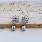 Tory Burch Classic DoubleT Pearl Drop Lady Classic Earrings