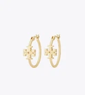 Tory Burch Double T Logo Mate Gold Color Kira Small Size Hoop Simple Elegant