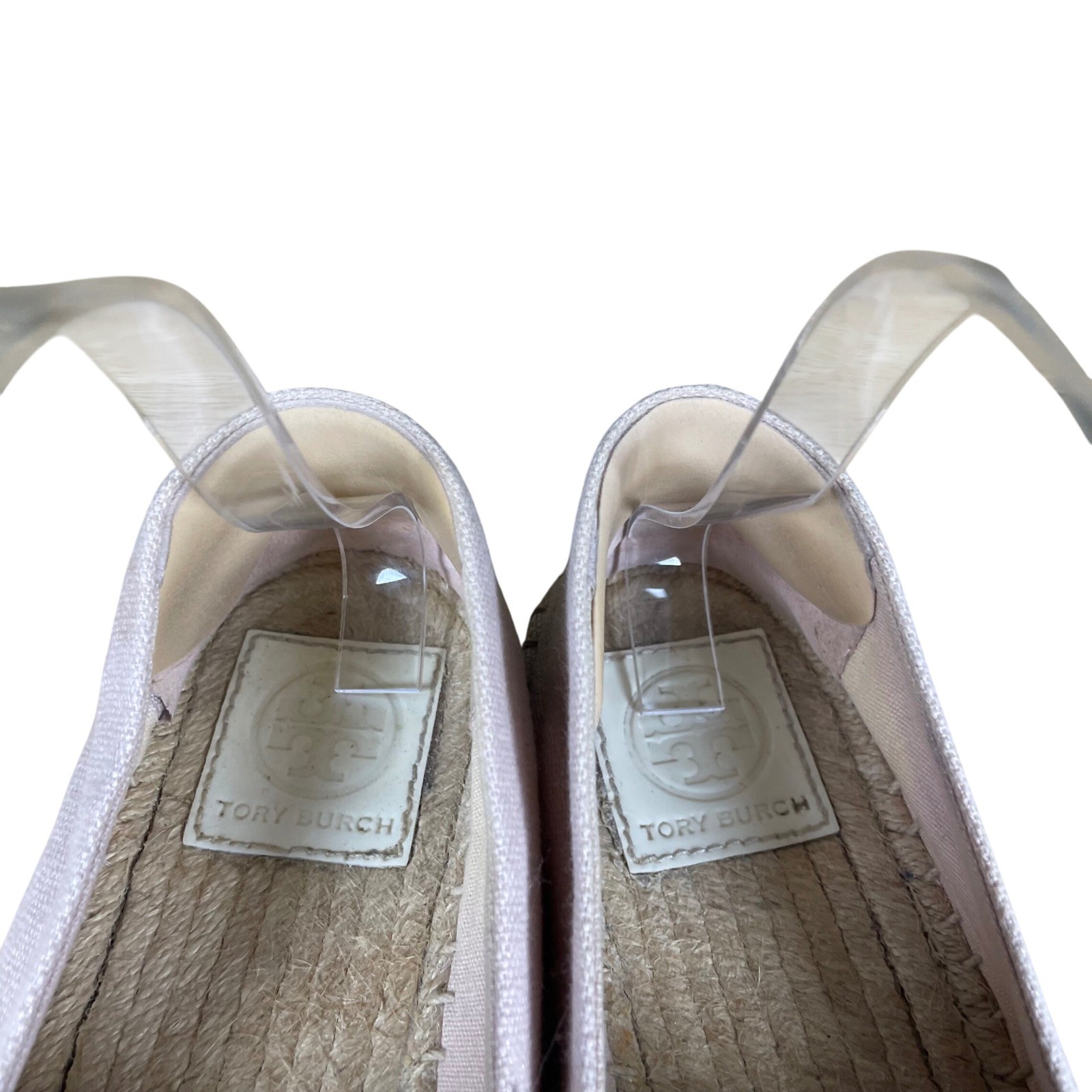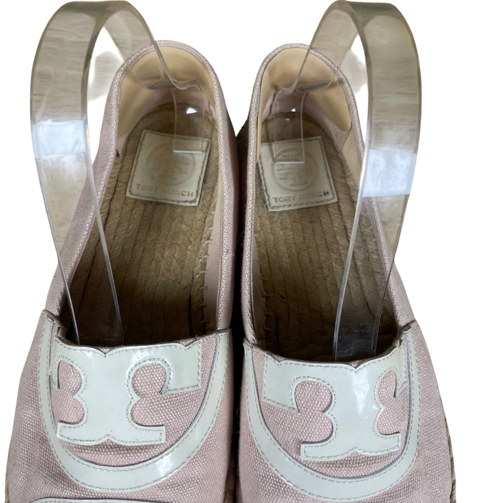 Tory Burch pink canvas espadrilles with iconic double T logo detailing. These slip-on flats feature a classic espadrille jute sole and a durable rubber outsole for comfort and traction. Perfect for casual outings, weekend brunches, or vacation strolls. Measurements: • Size: 8.5 Style: Slip-On Department: Women Upper Material: Canvas Features: Comfort, Cushioned, Breathable, Lightweight, Non-Slip Occasion: Casual, Travel, Business Theme: Logo Insole Material: Fabric Lining Material: Canvas Outsole Material: Rubber Type: Flat Keywords: Tory Burch espadrilles, Pink Tory Burch shoes, Women's flats, Canvas espadrilles, Designer espadrilles, Tory Burch double T logo, Slip-on flats, Comfortable flats, Summer shoes, Vacation shoes, Casual flats, Size 8.5 flats The Designer Clothing Exchange "Great Brands, Better Prices" - FAST DAILY SHIPPING - 5 STAR SELLER - 20%OFF BUNDLES (3 or more)