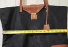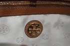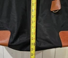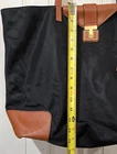The Tory Burch Mini Penn Tote in Black Nylon with Brown Leather Accent is a stylish and versatile handbag perfect for travel, casual outings, or business meetings. This medium-sized tote features a rectangular shape with a classic black exterior and gold-plated hardware accents. The bag boasts a zip, magnetic, and snap closure, along with double handles in brown leather. The interior is lined with leather and fabric, offering inner pockets and additional compartments for organization. This designer tote from Tory Burch is a must-have accessory for any woman looking for a chic and practical handbag. READ- Purse does have a stain on the inside bottom liner. PLEASE look at ALL pictures before purchasing.
