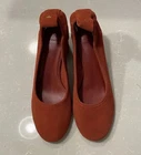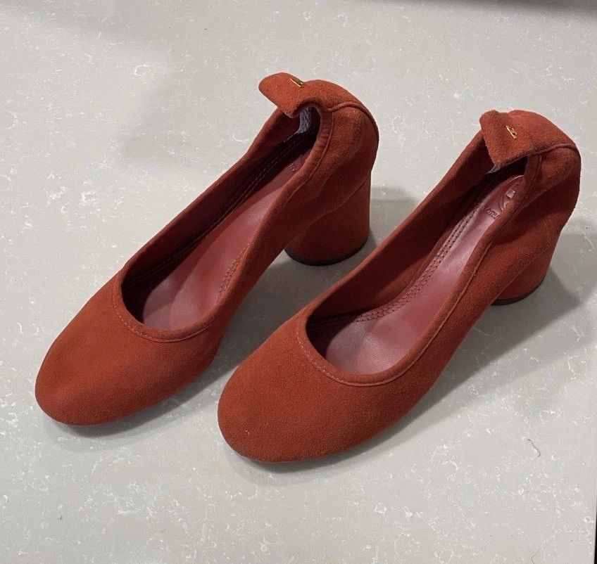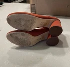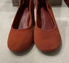The product is a pair of Tory Burch Red/Orange Therese Suede Pumps in size 8. These stylish heels are perfect for casual occasions in the summer and spring seasons. Made with leather and suede materials, with a leather insole for comfort, these pumps feature a classic pump style with a bright red color that adds a pop of color to any outfit. The Tory Burch brand ensures high quality and a sophisticated look, making these shoes a versatile and fashionable choice for any woman's wardrobe. Could use a little cleaning , great condition worn only a few times