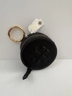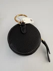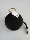 Tory Burch Thea Pebble Leather Coin Pouch with a key ring in black leather and gold-tone hardware. This stylish and practical accessory features the signature Tory Burch logo embossed on the front and a zip closure. Product Details Feature Detail Brand Tory Burch Collection Thea Material Pebbled leather Color Black with gold-tone hardware Closure Zipper and a clasp-push keychain attachment Dimensions Approximately 3 inches in diameter and 1.5 inches deep Style Number 150410 New with tags