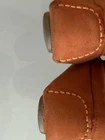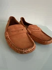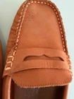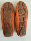 The product is a pair of Tory Burch Tradd Orange Suede Leather Driving Loafers Flats for women in size 8.5. These loafers feature a stylish and comfortable design, perfect for everyday wear. The orange suede leather upper and lining, along with leather outsole and insole, provide a high-quality and durable option for women looking for a versatile and fashionable shoe. The Tory Burch brand adds a touch of luxury and sophistication to these classic loafers.