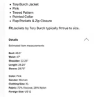 The Tory Burch Velvet Anorak Jacket is a stylish and elegant outerwear piece designed specifically for women. Made with luxurious velvet material in a beautiful pink color, this jacket exudes sophistication and feminine charm. The Anorak style adds a modern touch to the classic design, making it a versatile and trendy addition to any wardrobe. With a regular fit in size 12, this jacket is sure to be a staple in any woman's closet for years to come. Mild discoloration throughout fabric