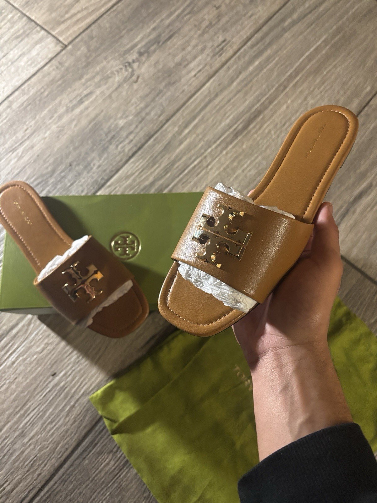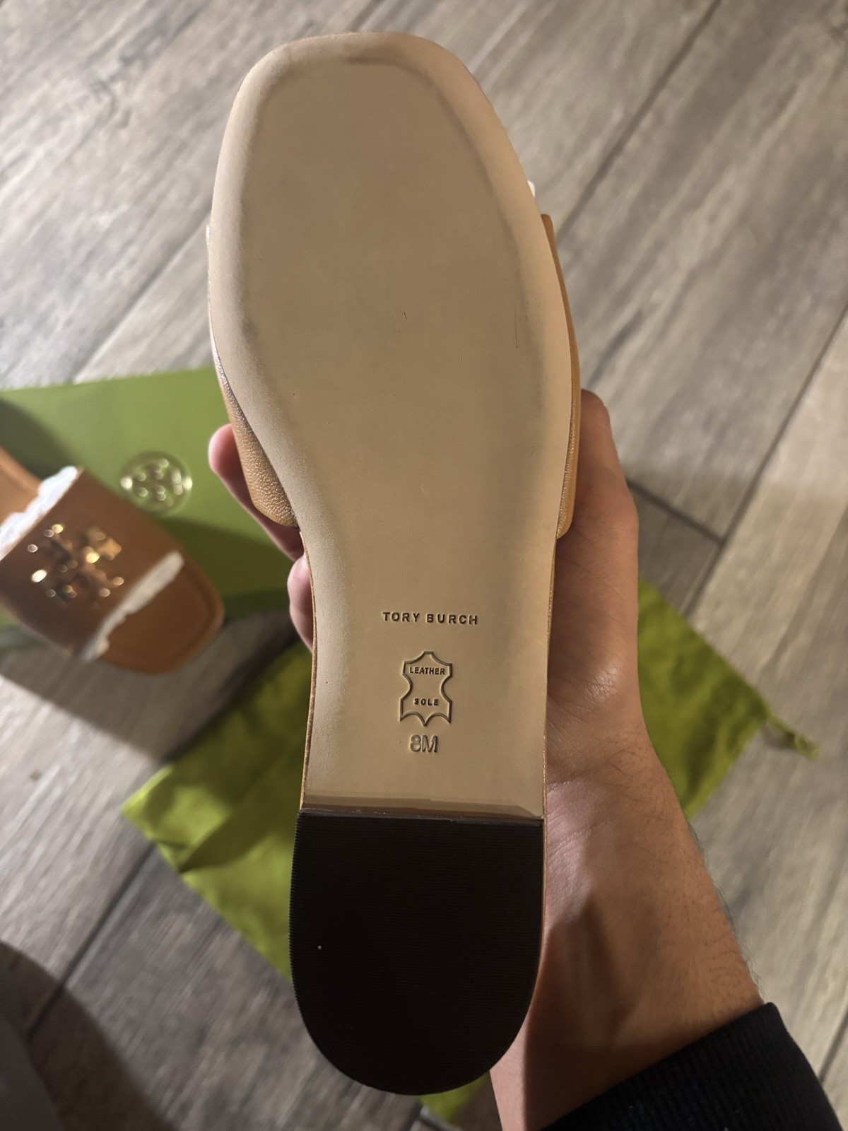 This Tory Burch Women's Leather Sandal in size 8 is a stylish and comfortable slip-on sandal. Brand new never been worn before. Didn’t fit me.