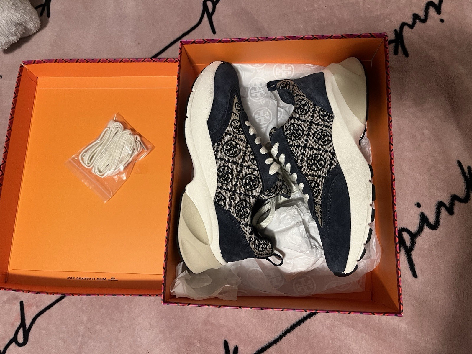 Tory Burch Women’s Navy T Monogram Good Luck Trainers Shoes W9. Women’s size 9. Brand New with original box!!!