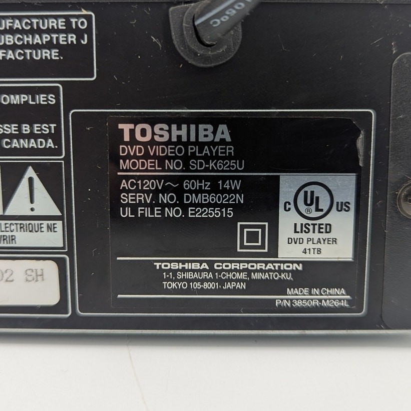 Tested & Working Toshiba DVD player Model No: SD-K625U Features 5 disc carousel Ships in box Is as pictured Remote not included, but aftermarket remotes are easy to program Smoke-free home Questions? Please ask SKU-SH411