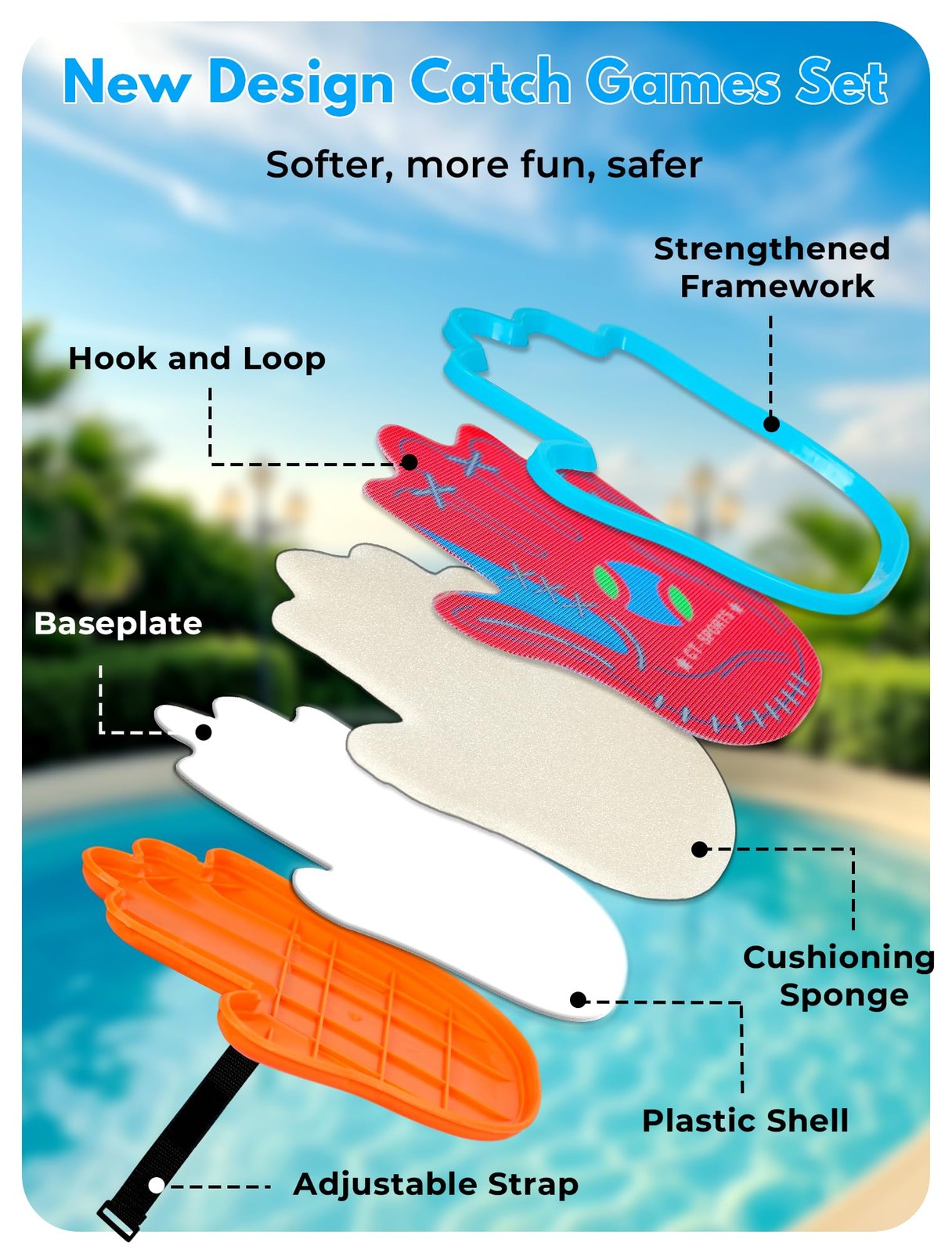 kids sports toy Sturdy & Waterproof: Built with a 5-layer waterproof structure, these toss and catch paddles are 3× more durable than typical sets. Perfect as kids pool toys, toddler pool toys, or lake toys, and excellent for a fun beach ball game or yard play Safe Sticky Balls: Comes with 4 soft sticky balls—2 in baseball style and 2 in football style—all filled with PU for safer tossing. These protect children’s faces and hands, making them ideal for toddlers 3-5, kids 4-8, and boys 8-12 Like a Star Player: The glove-inspired paddles help kids feel like real baseball or football stars. This design boosts coordination and confidence—perfect for the pool, beach, or family gatherings Family Games: Each set includes 4 upgraded paddles, 4 sticky balls, and a handy storage bag. Whether you’re enjoying outdoor sports at the pool, heading to the camping site, or playing in the yard, this set brings everyone together for memorable fun Ideal Sports Gifts: Great for birthdays, holidays, or any occasion, this versatile outdoor toy fosters hand-eye coordination and social skills in kids ages 3-8+, making it a top choice among water toys and sports gifts for active families