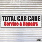 Total Car Care Banner Auto Repair, Tire Dealer, Service Bay, Garage Banner Sign 13 oz Indoor/Outdoor Vinyl Full Color High Definition Imprint Hemmed Finished Edges Grommets every approximately every 2ft.