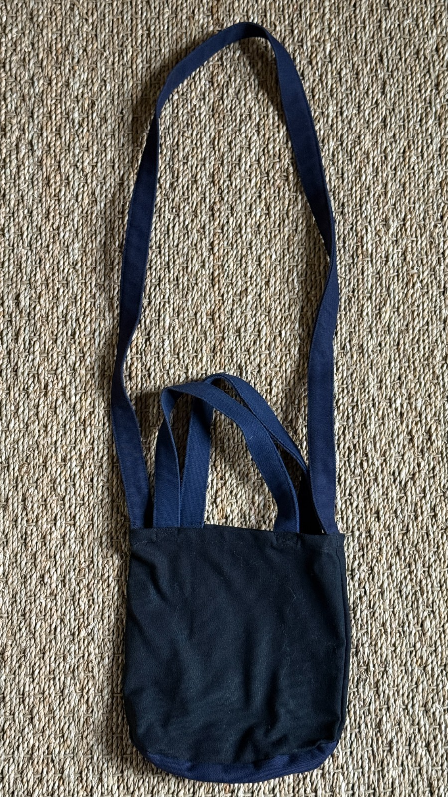 A mini version of our large tote. This bag features comfortable thick cross body and handle straps in stylish and eye popping combinations. Made in a durable heavy weight canvas yet easily foldable to keep it with you always. An interior pocket perfect for your iPhone or wallet. It’s the perfect for taking your essentials for quick errands, a night out or traveling. Body 10" x 10" x 2.5" Crossbody strap 44.5" x 1" Handle strap 16 " x 1" Interior pocket 6" x 4.5" 100% Heavy weight cotton canvas Dry clean or spot clean with damp cloth See my other listings for other color combinations!