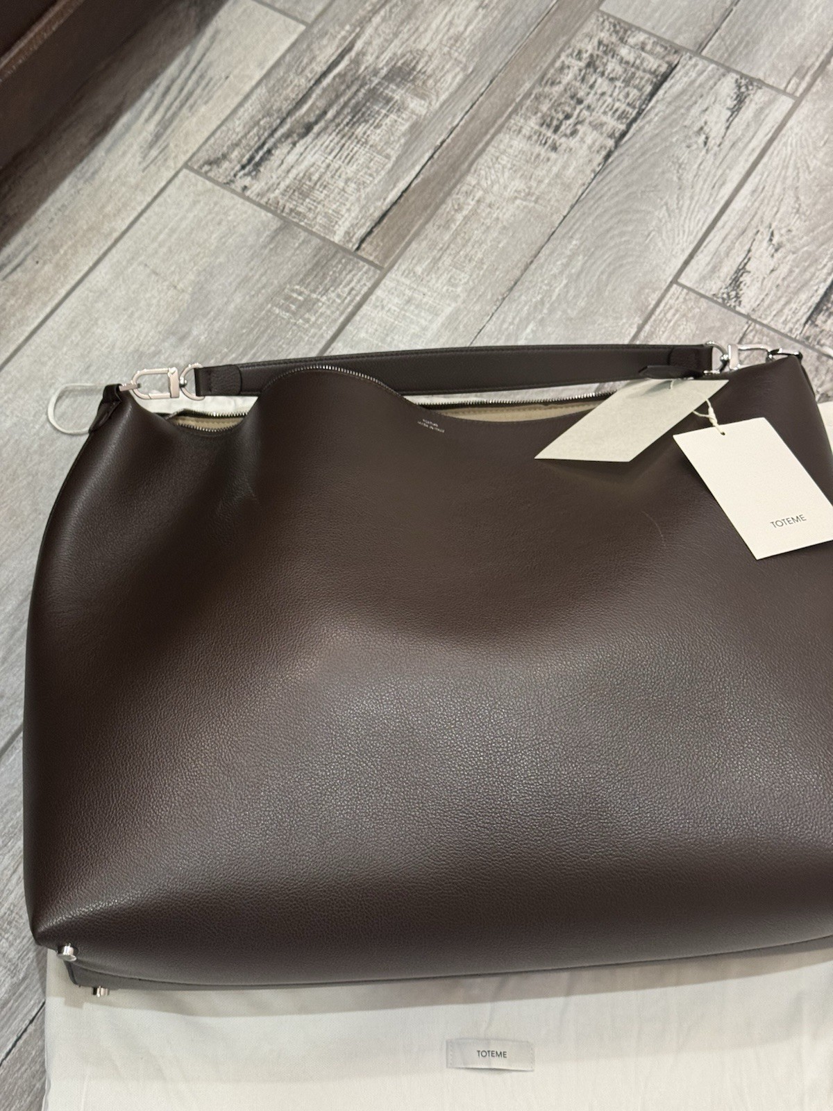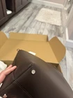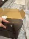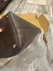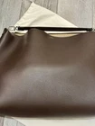 Elegant dark brown leather bag. Sleek design with a single handle. Perfect for any occasion. It is large size . 19 1/2 wide . Plenty room for daily stuff.