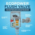 Product Description The Toto ECOPOWER 1.28 GPF Toilet Flushometer Valve is designed for high-traffic areas. This flush valve is a water-saving solution that does not require electricity or batteries. It uses running water to power its system. The ECOPOWER technology ensures that energy is saved while maintaining excellent flushing performance. Ideal for high-traffic spaces Requires no external power or battery replacement Features a manual override flush button Product Highlights This flushometer valve prevents water waste with its self-adjusting sensor that avoids ghost flushing. It supports improved automatic flushing, ensuring effective performance. It complies with WaterSense standards and is ADA compliant. Product Information Standard Information Brand : Toto MPN : TET1LB#CP Technical Specifications Gallons Per Flush : 1.28 Material : Bronze, Zinc Alloy Height : 7 inches Width : 4.5625 inches Length : 3.1875 inches WaterSense Certified : Yes Warranty : Manufacturer Three Year Limited Installation Type : Exposed
