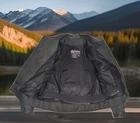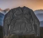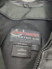 Tourmaster Coaster Air Series 2 Leather Motorcycle Riding Jacket Men's Size L/44 - True 23" Across Chest Laid Flat - 26" Length top of Shoulder to hem Genuine Leather Color: Black Full Zip Front with Zippered chest vents and sleeve cuffs Chest and side pockets double as vents Mesh Lining - there is NO Zip-In Liner on this One Padded shoulders, elbows & back Solid Condition - No major noteworthy wear but light general wear is present - No fraying, rips or holes - Please see pics