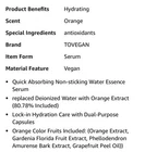 Tovegan Orange Oasis Serum 1.69 fl oz Color Food Series Face & Neck New In Box Orange scent. For use on face and neck. Condition-new in box Size/shape-1.69 fluid ounce My items are primarily thrifted and I do my very best to note any imperfections/callouts. Ships Next Day -Monday - Friday My items are stored in a pet/smoke free home Thanks for stopping in and looking! Lisa