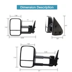 Product Description Detailed description of the product Specifications : Condition New Number Of Pieces 1 Fold Away Manual Fold Warranty 1 Year Color Black Location Passenger Right + Driver Left Side Features: Manual extended telescoping wide angle mirrors Manual Fold Up Arms Fits: 1999 2000 2001 2002 2003 2004 2005 2006 Chevrolet Silverado 1500 2500 3500 2007 Chevrolet Silverado 1500 2500 3500 Classic (Just fit 07 Classic Style) 1999 2000 2001 2002 2003 2004 2005 2006 GMC Sierra 1500 2500 3500 2007 GMC Sierra 1500 2500 3500 Classic (Just fit 07 Classic Style) 2002 2003 2004 2005 2006 Chevrolet Avalanche 1500 2500 2000 2001 2002 2003 2004 2005 2006 Chevrolet Suburban 1500 2500 2000 2001 2002 2003 2004 2005 2006 Chevrolet Tahoe 2000 2001 2002 2003 2004 2005 2006 GMC Yukon XL 1500 2500 (Excluding Denali Models) Note : These mirrors will only work properly on vehicles with these exact options. If your vehicle does not have the options listed, these mirrors may not function properly. No installation guide. Professional installation is highly recommended. In the event the item should fail due to manufacturing defects during intended use, we will replace the part by free.(1 Year Warranty) If you encounter any problems, please contact us and we will provide you with solutions. Thank you! Payment Shipping Returns Contact Us PayPal is our preferred method of payment for all of our eBay sales. For customer service please contact us via eBay MessagesImmediate payment via PayPal is required for all Buy It Now items. If you need special arrangements, please contact us through eBay messages. Generally, all goods will be shipped within 24 hours after the payment on the working day (except for goods sent from China). If you want to cancel the order or change the address, please contact us within 6 hours after payment, otherwise we will not be responsible. It takes 3-5 working days for logistics and transportation to be delivered. If you are not satisfied with your purchase, you may return it, for a refund or replacement - subject to the following: Contact us through eBay messages or the returns link to receive a Returned Merchandise Authorization (RMA) number to ensure proper handling of the return and/or replacement. In order to be eligible for a full refund, less shipping expenses, your returned merchandise must be in its original new condition, as shipped, with all packaging, manuals, and paperwork intact and unaltered. Items which have been opened are returnable, however they will carry a restocking fee. If that product is returned for a refund, the shipping expenses incurred, will be deducted from the refund. If an item is refused, the carrier bills us for shipping both ways, and these expenses incurred on your behalf need to be deducted from your refund If you have a question about a part you should contact us before buying.And If you have any questions after purchase, please contact us and we will provide a satisfactory solution. Payment PayPal is our preferred method of payment for all of our eBay sales. For customer service please contact us via eBay MessagesImmediate payment via PayPal is required for all Buy It Now items. If you need special arrangements, please contact us through eBay messages. Shipping Generally, all goods will be shipped within 24 hours after the payment on the working day (except for goods sent from China). If you want to cancel the order or change the address, please contact us within 6 hours after payment, otherwise we will not be responsible. It takes 3-5 working days for logistics and transportation to be delivered. Returns If you are not satisfied with your purchase, you may return it, for a refund or replacement - subject to the following: Contact us through eBay messages or the returns link to receive a Returned Merchandise Authorization (RMA) number to ensure proper handling of the return and/or replacement. In order to be eligible for a full refund, less shipping expenses, your returned merchandise must be in its original new condition, as shipped, with all packaging, manuals, and paperwork intact and unaltered. Items which have been opened are returnable, however they will carry a restocking fee. If that product is returned for a refund, the shipping expenses incurred, will be deducted from the refund. If an item is refused, the carrier bills us for shipping both ways, and these expenses incurred on your behalf need to be deducted from your refund Contact Us If you have a question about a part you should contact us before buying.And If you have any questions after purchase, please contact us and we will provide a satisfactory solution. Related Products Pair Tow Mirrors Power Heated Turn Signal For 2015-2018 Chevrolet Silverado 2500 Tow Mirrors Manual Extendable For 2008-2010 Chevrolet Suburban 1500 2500 Black Tow Mirrors Power Heated Fit 2007-2013 GMC Sierra 1500 2500 3500 Left+Right Side Tow Mirrors Power Heated Fits 2001-2002 Chevy Tahoe GMC Yukon Left+Right Black Pair Tow Mirrors Power Signal Fits 2003-2006 GMC Sierra 1500 2500HD 3500 Pickup Heated √ NO √ √ √ Power √ NO √ √ √ Turn Signal Light √ NO NO NO NO temperature sensor NO NO NO NO NO Puddle Light √ NO NO NO NO Arrow Signal Light √ NO √ √ √ housing color Black Black Black Black Black folding Manual Manual Manual Manual Manual fit for 14-18 Chevy Silverado 1500 15-18 Chevy Silverado 2500 3500 14-18 GMC Sierra 1500 15-18 GMC Sierra 2500 3500 07-13 Chevy Avalanche 07-14 Chevy Silverado/ GMC Sierra 07-14 Chevy Suburban 07-14 Chevy Tahoe/ GMC Yukon 07-13 Chevy Avalanche 07-14 Chevy Silverado/ GMC Sierra 07-14 Chevy Suburban 07-14 Chevy Tahoe/ GMC Yukon 99-02 Chevy Silverado / GMC Sierra 00-02 Chevy Suburban 1500 2500 02 Chevy Avalanche 1500 2500 01-02 Chevy Tahoe / GMC Yukon / Yukon XL Denali 03-06 Chevy Silverado / Tahoe / Suburban /Avalanche 03-06 GMC Sierra / GMC Yukon / Yukon XL 2007 Chevy Silverado Classic /GMC Sierra Classic [22 Pin Plug] On Dec 1, 2024 at 10:38:46 PST, sell