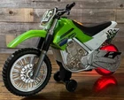 Toy State, Road Rippers, Kawasaki, Dirt Bike, KLX 140, #135, Motorcycle, Racing, Back Piece is Broken Off, Moves, Kids, Toy, Entertainment, Sound Effects, Plays Snippet of Metal Instrumental, Lights, Electronic, Green, White, Black, 3 AA Batteries Not Included, Works Great, Rubber, Plastic