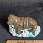 This vintage toy walrus from Greenbrier International is a rare find for collectors and animal enthusiasts. The intricately designed figurine depicts a lifelike walrus on ice, made of durable plastic material. Its Safari Ltd pattern adds to its uniqueness, making it a great addition to any decorative collection. This 3.5" x 2.5" toy is suitable for teens, adults, and kids who love animals.