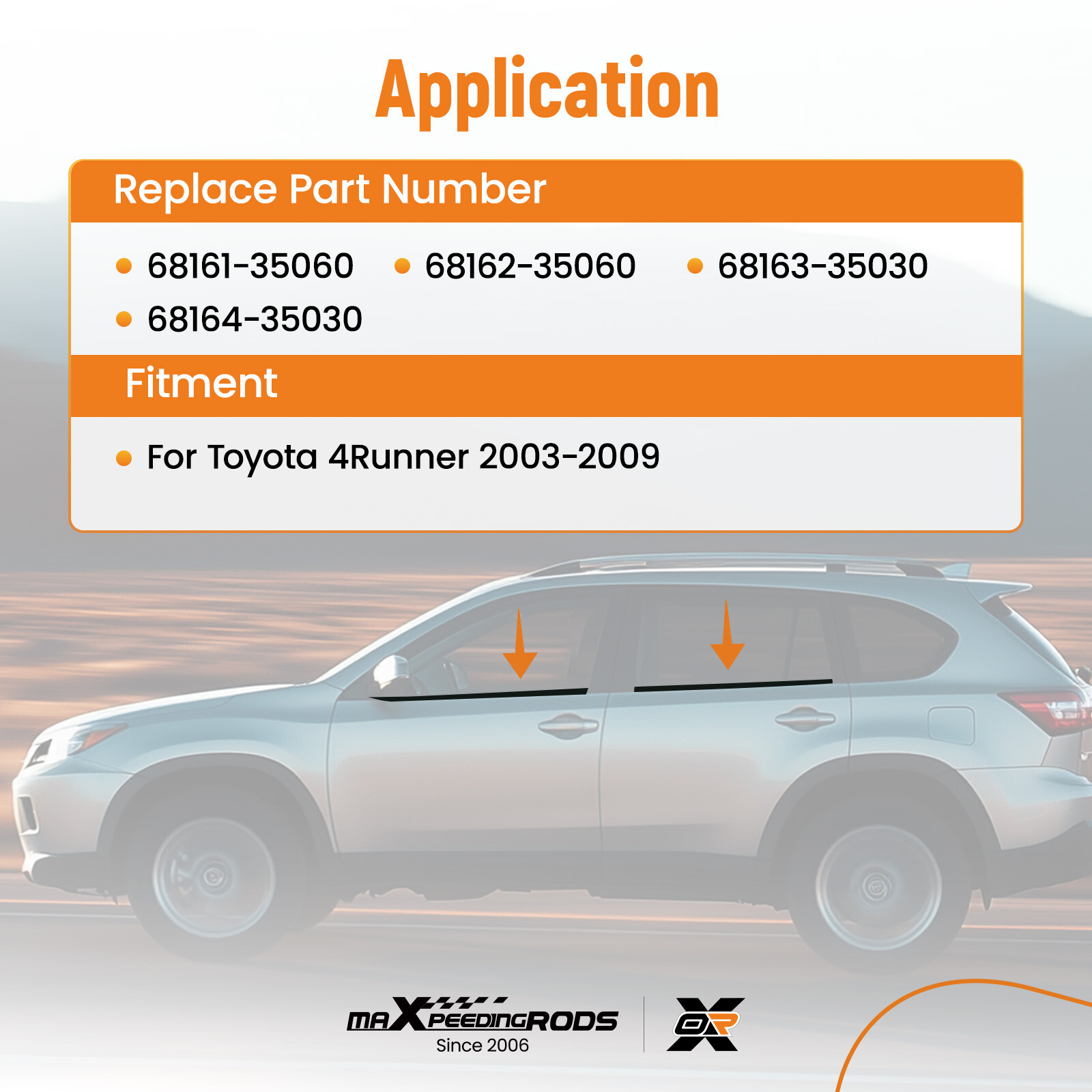zjpss LOGO Home Contact us Promotion WHY CHOSE US Manufacturer We know our products Easy Return Quick, Simple Guaranteed Fitment Always the correct part PRODUCT DISPLAY Outer Door Seal Belt Molding Weatherstrip for Toyota 4Runner 03-09 68163-35030 Fast Shipping International Shipping 30 Days Return Policy Secure Shopping DESCRIPTION Product Specifications Product Type: Window Outer Weatherstrip Belt Material: Rubber Color: Black Attachment Type: Plug Fitment Type: Direct Replacement Placement on Vehicle: Front, Rear, Left, Right OE/Part Number: 68161-35060, 68162-35060, 68163-35030, 68164-35030 Manufacturer Warranty: 1-Year Warranty Application For Toyota 4Runner 2003-2009 OE Number/Replace Part Number 68161-35060, 68162-35060, 68163-35030, 68164-35030 Package included 4* Door Window Moulding Trim Weatherstrip (Left&Right, Front & Rear) (Showing as the picture) *No instruction included. Feature >> Easy to install. >> Easy to align and can be fixed with adhesive or fasteners. >> Manufactured from premium rubber, it is long-lasting, elastic and non-poisonous. >> Lasts longer in hotter weather and sticks better. The strong rubber protects against dust, dirt, rain, snow and noise, so it stays clean and in good condition for longer. Note >> Please refer to the compatibility table to ascertain whether this part is suitable for your own vehicle, matching in year, make and model. >> Please feel free to contact us for whatever we can help. SHIPPING US Domestic Shipping Notice - All items will be dispatched within 24hrs(Mon-Fri) Our carrier collects all the parcels at 4:30am PDT, any payment paid after 5:00am PDT will be shipped the next day at 4:30am PDT. If you paid Item Shipped On Est.Delivery Time Before Apr. 1st at 4:30am Apr. 1st at 5:00am Apr. 5th - Apr. 7th After Apr. 1st at 4:30am Apr. 2nd at 5:00am Apr. 6th - Apr. 8th If our estimated delivery time and eBay’s are contradictory,please refer to the standard delivery time of ours. Estimated Delivery Time From To Service Est.Delivery Time US US UPS or Fedex Ground 3-5 Business days Outside of US DHL FedEx 4-7 Business days Tracking number will be updated in 24 hours after shipment Please provide the following shipping information for your order Full physical address Telephone number Otherwise your shipment will be deferred. We are not responsible for any shipping lost caused by wrong shipping information Shipping rate If our ebay item listing doesn't show the shipping cost to your place. Please contact us to calculate the shipping fee for you. International Shipment For international shipment, we do not cover any import taxes or duties. Import tax is charged by the government, not us. Our item price and shipping cost do not include any import tax which will be charged by the shipping company when you got the parcel. Please be noted that is not the extra shipping fee. ` NO hidden charge!!! WARRANTY Free 2 Year Warranty: All AutoModPlanet products have 2 year warranty (unless otherwise stated). In the very unlikely event that you have a problem with our product, please contact us via eBay messages. Easy Return: If you are unhappy with your purchase for any reason, you can return it to us in an un-used condition in the original packaging within 30 days of purchase and we'll give you a refund or exchange. The refund/Exchange will not include postage/eBay costs. Please note you MUST contact us to obtain a Return Authorization Number before returning any part. Any parcel without the Return Authorization Number will be rejected. If your item is faulty or was incorrect, you must contact our sales representative before returning the parcel and we will endeavour to solve the problem effectively. Video or picture is required to show the item condition before we issue the Return Authorization Number. Important notice: 1. Any returned item(s) without Return authorization number will be rejected. 2. Please return your item(s) in original packaging and ensure that all packages are securely wrapped 3. We will not accept responsibility for loss or damage of goods during transit, please ensure that the insurance cover option is taken where possible 4. Upon receipt, all products will be inspected at our discretion in 3-5 business days. Then, the updated result will be informed. If you have made a mistake on purchase and wish to cancel the order before it is dispatched please contact us by ebay massages or email as quickly as possible. Note: All parcel will be collected by carrier at 8:00am on Monday to Friday. FAQ Will this fit my car? We have used the eBay compatibility list as a guide for buyers to use, but the eBay data system is not accurate and incomplete sometimes. Please make sure you have read through the whole listing and paid attention to “note” and “notice”. If there is any uncertain, please use the eBay message to check with our sales first. How much does delivery cost and how long will it take? You can check the delivery cost in the listing “Shipping and payments” section by selecting your country and entering your zip code. If it is not specified, please provide us your shipping address and zip code via eBay message. For US domestic shipping to 48 states, the delivery time is around 3-5 business days. The international shipment delivery time is around 4-7 business days. What payment methods do you accept? We currently only accept payment via PayPal. You can also use PayPal as a guest and pay using a debit or credit card. When will my order be dispatched? We will arrange the shipment in 1 business day after the payment is cleared. The tracking number will be updated on eBay in 24 hours after the shipment. Please notice that there is no shipment during weekend and holidays. Can I amend my order? Sorry no. Once the payment is cleared, we cannot amend any item(s), quantities, or add or remove items. We are also unable to change the delivery address. Therefore, please double check all the order information before making payment. What do 