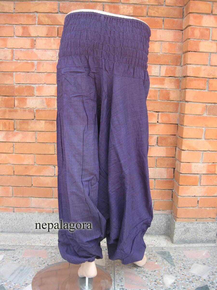 Handloom Cotton Trouser These handloom 100% cotton fabrics here in Nepal are known as "Khadar". These fabrics are well known being light and it gets soft as it is used and come in many different color variations that you can choose from. Very good for a hot climate, as it absorbs body moisture to help keep the skin dry. If you are looking for a summer trouser this is the perfect got to have product. This trouser has been in the market since before Hippy era and still people love to wear it just because of its quality and unique design. The slight variation in terms of fabric knitting, size, colors and odd threads are accepted as part of its making and are not considered as defect. We are into fair trade business and we are against child labor what so ever. Happy buying and hope to hear if there is any questions regarding any of our products. This trouser is commonly known as Aladdin trouser because of its shape. It is very comfort to wear because of having a free space with extra fabric that is used in this design. It has elasticized waistband and in the openings at the ankles. This pant is unique because of its design. It does not have separate leg holes like the regular trousers or pant have. It is enclosed in a single fabric till the ankles where you will find two elasticized openings for the feet to fit. Because the trouser has an extra fabric to have a space to have the comfort while wearing. As the trouser is made of elasticized bands to fit any size is what the advantage of wearing this trouser to fit of your comfort size. Anklet openings will allow you to decrease or increase the length of the trouser by just adjusting the elasticized opening up or down of your leg. The measurements are in approximately. Size :- M/Free size Waist: Minimum size 19" (36" stretchable) Length: 41.5" approx Main color: Purple Condition:- New with tag (Tr232/DDA) Fabric colors may slightly vary due to light effects. Hand wash Separately in cold water. Please read our policy before bidding/buying. Please note that I have done my best to give you the exact accurate color of the product as I can and have mentioned in the details. However, I'm not in the position to guarantee that every screen computer monitor will depict the actual color of the products. Please message me if you are concerned about the color or about any details before purchasing. It is worth to purchase handmade products For whole Sale contact us. Benefits of Buying Handmade Products Environmentally friendly. Items that are handmade take less energy and natural resources to produce than items made on a mass production assembly line. ... Better for the economy. Buying handmade products can also create jobs and strengthen the economy. ... Purchases you can feel good about. You will feel the human touch. The older it gets the better value you get (antique).
