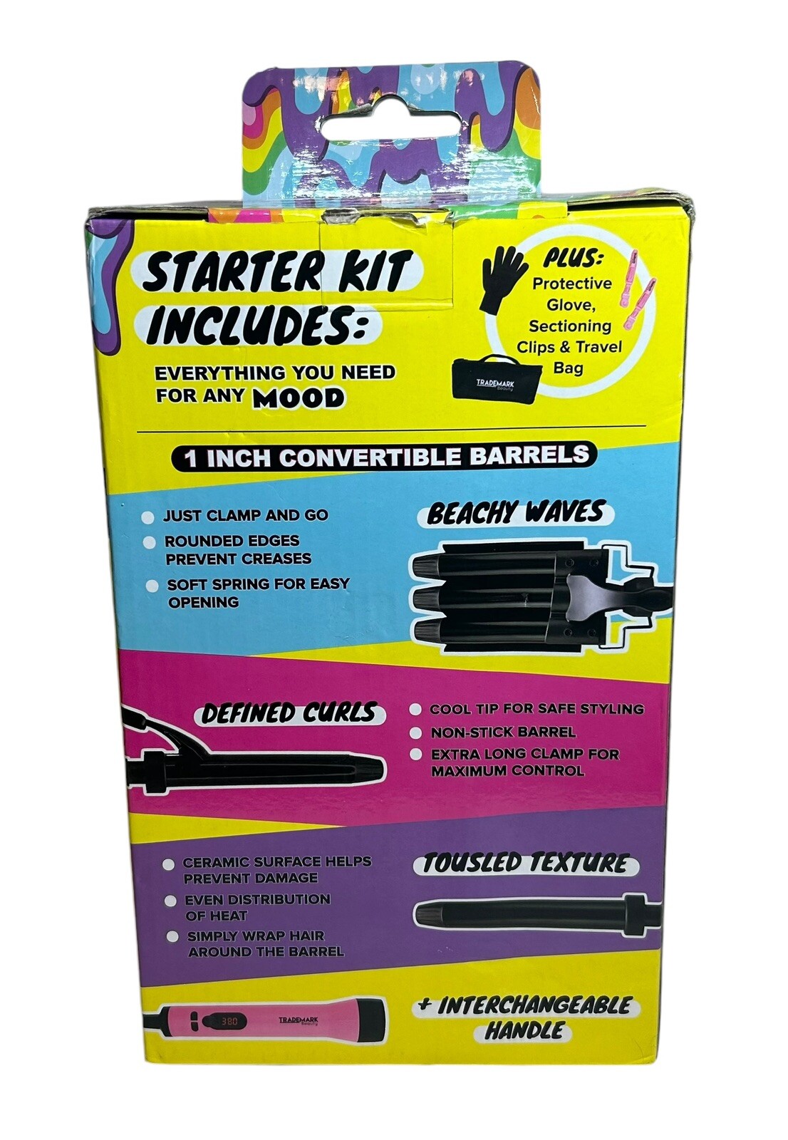 Material:Ceramic, TourmalineSize:1"gtin13:850028169261Brand:Trademark BeautyUPC:850028169261Features:Interchangeable BarrelsMPN:83744709Type:Hair Irons and CurlersBarrel Size:1 in