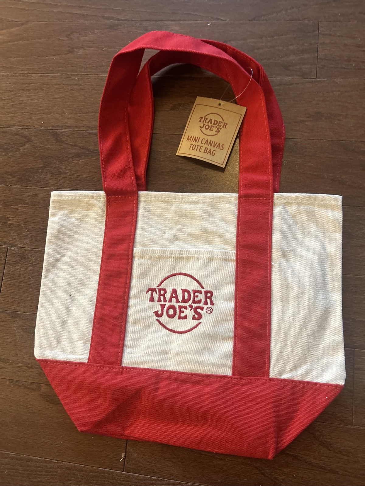 The Trader Joe's Mini Canvas Tote Bags in red and yellow are stylish and practical for women on-the-go. With a vibrant exterior and matching yellow lining, these mini tote bags are perfect for carrying essentials while out shopping or running errands. The red handles and hardware add a pop of color to the overall design, making them a visually appealing addition to any outfit. Made from durable canvas material, these tote bags are both trendy and functional for everyday use.
