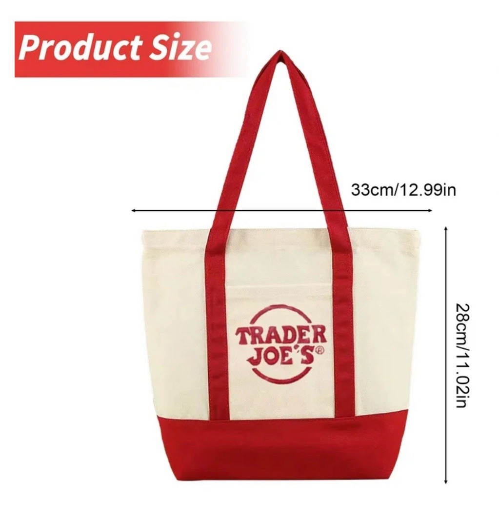 The Trader Joe's Mini Canvas Tote Bag in green is a limited edition handbag featuring a tote closure and double green handles. Made of canvas with a cotton lining, this bag is perfect for travel, casual outings, or workwear. The exterior is adorned with the Trader Joe's logo, adding a playful touch to the colorful theme. This stylish tote offers a compact size for easy portability, making it a versatile accessory for any woman's wardrobe.