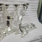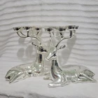 Traditions Reindeer Candle Holders Brass Silver Plated Finish for Table LOVELY! See multiple pictures for details. The pictures are of the item that you are bidding on or purchasing. No damage, no tears, no rips. From a smoke-free home. Like the item but not the price? Offers are welcome & all reasonable offers will be accepted. Please message first with any questions before purchase or bidding. Thanks for browsing and good luck!