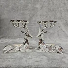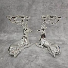 Traditions Reindeer Candle Holders Brass with Silver Plated Finish Heavy Christmas Brass construction with silver plated finish Beautiful centerpiece or mantle decoration Each Reindeer holds 6 spherical (ball-shaped) candles - not included This item is preowned and in lightly used condition. Please s ee photos for condition and measurements We ship Daily for quick delivery. Please feel free to message with any questions. Thank you for your purchase and Supporting our Small Business 😊