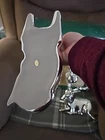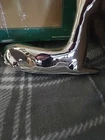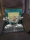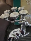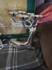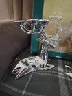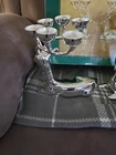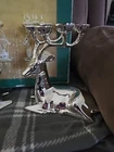 Add a touch of holiday magic to your home with these Traditions Reindeer Candle Holders. Crafted from brass with a silver-plated finish, these candle holders are perfect for any room and suitable for votive and taper/dinner candles. The intricate reindeer design and silver color make them a lovely addition to your Christmas decor. Measuring 9.5 inches in length and 9.25 inches in height, these candle holders are sure to bring a warm and cozy glow to your home. They are easy to clean with a damp cloth and made in China with careful attention to detail. Bring the joy of the holiday season into your home with these beautiful candle holders. Please note that there are 2 scratches on the back of one of the holders. Because of the shiny silver, they are very difficult to see. I did take a pic of them for you.