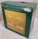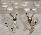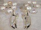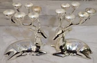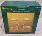 Traditions Reindeer Candle Holders Brass with Silver Plated Finish. This is a used item, it shows signs of use throughout its body in the form of scratching and scuffing to the metal finish as well as discoloration on some parts. Please refer to the provided photos for more details on the condition of this item. There are no candles included.