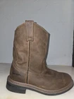 These Trail Guide Wellington leather workwear boots in dark brown with a round toe shape and pull-on closure, they're perfect for casual or workwear occasions. The boots feature pull-on tabs, slip-resistant and oil-resistant properties, making them ideal for winter, fall, and spring seasons. The mid-calf shoe shaft style and solid pattern. The boots are made of leather and have a foam insole material. They're available in men's size 8 and were manufactured in Guatemala. These boots are part of the Trail Guide product line and are perfect for those who love the motorcycle, equestrian, horse, work, or cowboy theme.