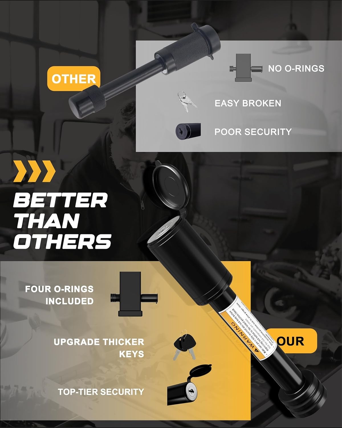 Free eBay listing template designed by dewiso.com RETRUE Trailer Hitch Receiver Pin Lock, Suitable for 2 Inch Receiver, 5/8" Dia Hitch Lock for Securely Locking Trailer Hitch with Two Keys, Black FREE AND FAST SHIPPING! RETRUE Trailer Hitch Lock Design: 5/8 Inch diameter trailer hitch lock pin with Super Extra Long Effective Length 2 3/4 Inch. Specially for big towing vehicle, truck, 2" hitch receiver or Class III IV hitches. Note: For your convenience please verify dimensions and length of pin you need before purchase Durability: The lock cylinder is made of high quality zinc alloy tubular. Its anti-theft design can resist huge impacts from different kinds of external forces. Adapted rubber key slot cap is all-weather proof keeps keyhole safe and clean Easy to Install and Use: This hitch lock keeps your trailer hitch securely locked, giving you peace of mind wherever you go The Fitment of Locking Hitch Pin: Class III IV Hitches, Hitch Bike Rack Tray Ball Tow Rope for Trailer Truck Car Boat What Will You Get: The pin lock covered with high quality solid steel and black electrophoretic paint. It is quite strong and withstand 30,000 lbs, twice as much as a regular pin lock. Come with 4 noise reducing rubber rings. It is from RETRUE Your reliable partner. 24/7 Product We offer a 30-Day Return Policy on items which you are not completely satisfied with. You have the option for a full-refund or an exchange of the item. No returns are available on items shipped outside of the US . Shipping We offer Free Shipping to the US and ship within 2 business days of payment, usually sooner. We use UPS express shipping. That's why your products are usually delivered within 3 days . Contact We try our very best to make sure every customer is completely satisfied. If there's a problem , message us! We're happy to help. 24/7 live chat available.