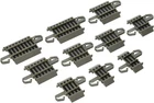 E-Z Track System - Snaps Together, Stays Together on Floors, Tables & Carpets Set Up is Quick, Easy and Fun - No Nails, Screws, or Special Tools Needed Nickel Silver Rail with Gray Roadbed, Designed to Provide Excellent Conductivity and Durability HO Scale 1:87 - Modeled From AAR Track Engineering Dimensions Easy to Use For Both Temporary and Permanent Train Layouts Product Description Snap-Fit E-Z TRACK E-Z TRACK CONNECTOR ASSORTMENT - Contains 2 each .75", 1", 1.25", 1.5" and 2" straight (card) - NICKEL SILVER Rail With Gray Roadbed - HO Scale. Bachmann's exclusive E-Z Track system makes set-up quick, easy and fun. E-Z Track is designed to Snap Together and Stay Together on Floors, Tables and Carpets. This product features Nickel Silver Rail with Gray Roadbed. From the Manufacturer Contains 2 each, .75", 1", 1.25", 1.5" and 2" straight Bachmann's exclusive E-Z Track system makes set-up quick, easy and fun. Nickel Silver Rail. Gray Roadbed. E-Z Track System --Snaps Together, Stays Together on Floors, Tables and carpets.. Nickel Silver Rail. Gray roadbed. E-Z track system--snaps together, stays together on floors, tables and carpets. No nails, screws or special tools needed. Modeled from AAR track engineering dimensions.