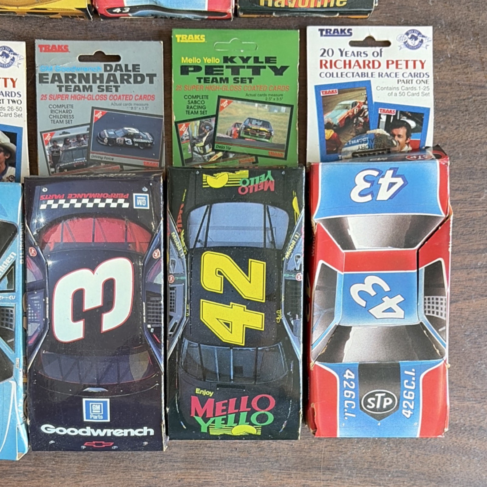 Manufacturer:TraksSet:20 Years of Richard Petty Collectable Race Cards, Pennzoil MICHAECard Size:2.5 x 3.5 inNumber of Cards:25Configuration:BoxType:Sports Trading CardMaterial:Card StockTeam:Bahari Racing, Richard Childress Racing, SABCO Racing, Robert Yates RacingPlayer/Athlete:Richard Petty, Dale Earnhardt, Kyle Petty, Michael Waltrip, Davey AllisonCountry of Origin:United StatesFeatures:Super High-Gloss Coated CardsMPN:30859002436Sport:Auto Racing