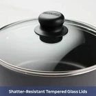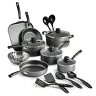 About this item Tramontina PrimaWare 18-Piece Nonstick Cookware Set: Patterned gray interior non-stick coating for easy cooking and cleaning Riveted, stay-cool handles Heat- and shatter-resistant tempered glass lids allow easy monitoring of cooking progress Dishwasher-safe Compatible with gas, electric and ceramic glass cooktops Set includes: 8" saute pan 9" deep saute pan 11" griddle 1 qt sauce pan with lid 2 qt sauce pan with lid 3 qt sauce pan with lid 4 qt Dutch oven with lid (4 qt lid fits the 9" deep saute pan) Stainless steel foldup steamer Solid spoon Slotted spoon Solid turner Slotted turner Pasta spoon Ladle