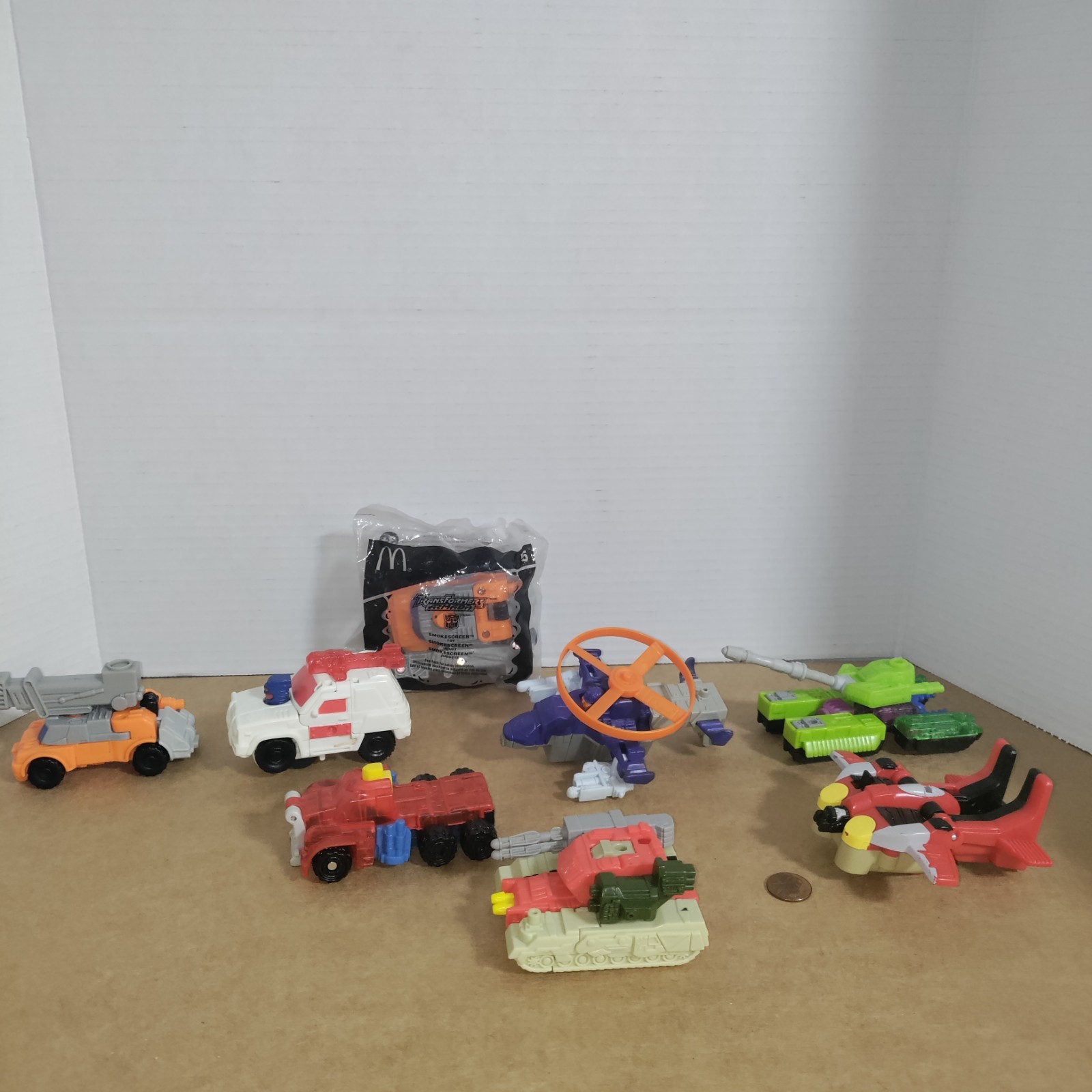 All items are in very good shape,all have their accessories.....extra Smokescreen is sealed , almost a set .. missing Hot Shot figure....you get: Optimus Prime ..came with no accessory Megatron ... complete Cyclonus... complete Demolishor... complete Red Alert ..came with no accessory Smokescreen... complete Starscream...came with no accessory Worth completing.... Sold As-is