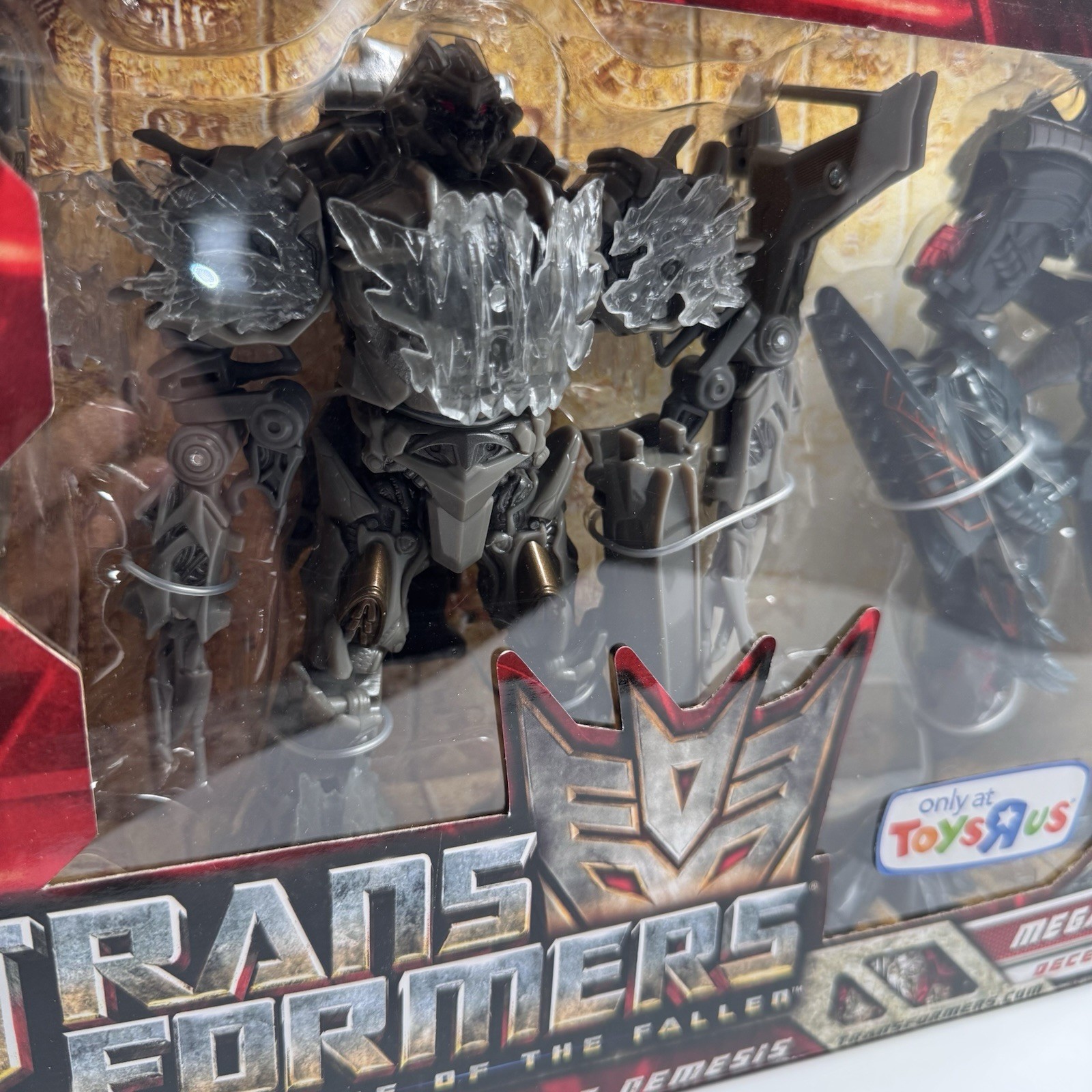 Transformers: Revenge of the Fallen Gathering at the Nemesis 3-Pack Toys “R” Us Exclusive (© Hasbro & DreamWorks 2009). Includes 3 Decepticons: • Megatron • The Fallen • Soundwave Detailed figures based on the ROTF movie designs. Excellent villain set for display and a must-have for Transformers collectors. Packaging shows info and character stats on the back. 📌 Exclusive release 📌 Official Hasbro product 📌 See all photos for exact details 🎁 Bundle & save!