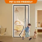 【Insulated Door Curtain Size】This magnetic thermal insulated curtain size: 37.4"x83",Fits door size up to: 36" x 82", which is widely used for Front back doors, kitchen, air-conditioned room. Please measure twice your door size before placing order. The doorway curtain is a good companion for air-conditioned rooms, which can prevent warm air loss in winter and keep the cold wind from entering,stop the cold air-conditioning escaping of your room in summer and keep hot air out, which saves energy and cut home heating costs effectively,make you enjoy a warm winter or a cool summer! 【Left Right Side Opening】This magnetic screen door is a universal side opening design,in order to catch the door handle easily. hook tape can be attached to the both side of soft plush eges of Insulated Door Curtain,reversible left or right opening according to the position of your door handle. 【EVA Eco-Friendly Material】Our magnetic self-closing door curtain is made of 0.15mm thickness environmental protection EVA material which is soft, durable,non-odorous and easy to clean. To keep the heat of the room in winter and cold air in summer. 【Easy to Install】This magnetic screen door package included a roll of magic tape, a pack of push pins, and an instruction manual.The doorway door curtain is easy to install. simply peel the adhesive backing off, apply it to the dry door frame. the push pins ensure the screen door is installed more stable. 【Hands Free Design】The screen door with automatic magnets closure is easy to open or close whether your hands full,because the Insulated Door Curtain is embedded with more powerful magnets. 【Kid & Pet Friendly】Our Insulated Door Curtain is embedded with powerful magnets,kids and pets can go in and out of doors with hands free. 【Quality Guaranty】If there is any quality issue for this magnetic insulated door curtain or you are not happy with your purchase, please do not hesitate to . We will do our best to help you. Product Description Our transparent reversible left or right side opening insulated door curtain is made of EVA insulated materia.It can maintain the room temperature indoor in winter,and it can also keep the cold air-condition wind indoor in summer.The thermal insulated curtain with automatic magnets closure is easy to open or close,so the kids and pets can go in and out easily. The thermal insulated door curtain is embedded with more powerful magnets,even if your hands are full,you can pass through with hands free,the door curtain is easy to close seamlessly. Our magnetic screen door is embedded with powerful magnets,you don't have to open or close the door,your kids and pets can go in and out of the door with hands free. The Insulated Door Curtain is made of transparent EVA Insulated material.It can maintain the temperature indoor in winter,and it can also keep the cold air-condition wind indoor in summer. Specifications: Product Name: Transparent Reversible Left or Right Side Opening Insulated Door Curtain Screen Size: 37.4"x83" ; Fit Door Size: Up To 36" x 82" ; Color: Transparent ; Material: EVA Material . Package Include: A Thernal Insulated Door Curtain ; A roll of Magic Tape ; A pack of push pins .