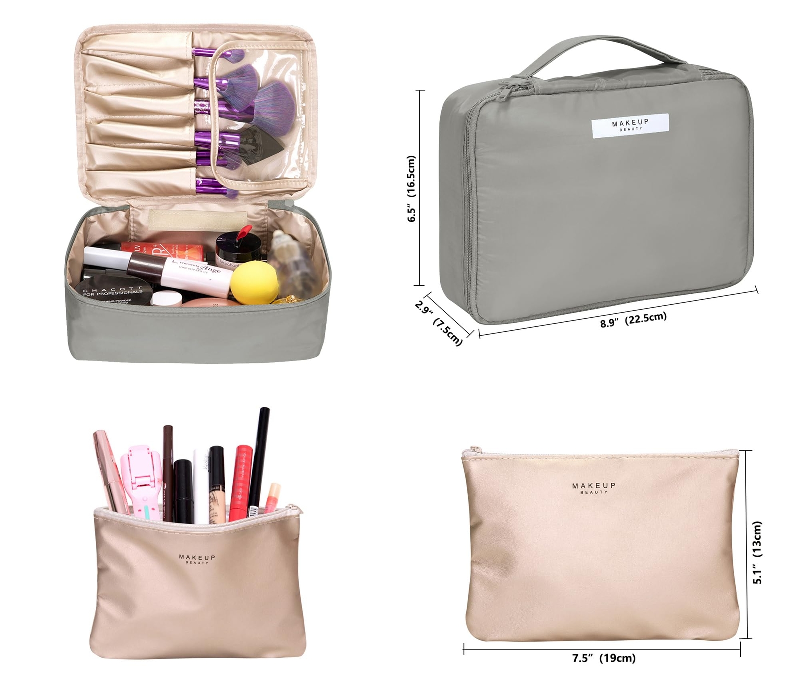 Ginsco Travel makeup bag with brush holder, 2Pcs large cosmetic bag Travel Makeup Organizer Portable Water-resistant Toiletry Bag with Handle for Girls Women Gray LARGE CAPACITY - Large cosmetic bag for women travel. Practical yet lightweight, is only 4.2 oz, so that's a major plus for traveling. The cosmetic travel bag with top compartment features 6 brush holders, can organize makeup brushes neatly and orderly. The makeup travel bag can keep the brushes from damage and mess. The transparent cover is waterproof and easy to clean, allows you to see all the makeup brushes and is easy to get what you want. MULTIFUNCTIONAL - Travel makeup bag, with an inner pouch, contains 3 compartments, a main large compartment, a brushes compartment and a detachable cosmetic bag. The large capacity travel cosmetic bag is deep enough for larger bottle, toiletries, makeup tools, brushes, foundation, skin cares, sunscreen, nail polish etc. The small inner pouch for lipstick, earphones, jewelry and other small items. WATER - RESISTANT FABRIC- Large capacity makeup bag, made of durable and water-resistant nylon fabric. It can effectively prevent objects from getting wet while storing your gear. TOILETRY BAG WITH FIRM HANDLE - Make up bags women, with the handle on the top or the side make it convenient to carry. You can easily take the travel make up bag out from the suitcase. You can also hang the travel cosmetic bag on the hanger, doorknob or towel rack, free your hands. PORTABLE FOR ALL USES - This travel cosmetic bags for women is lightweight and portable. Perfect for packing for vacations or just everyday use. You can use it for many different purposes: to bring to work, for traveling, for camping, for beach, to keep in a locker at a gym, etc. IDEAL GIFT - Make up bags travel. It is a great ideal gift for yourself or someone special. Perfect choice for Mother's Day, Christmas Day, Thanks Giving Day, Birthday. COLOR DIFFERENCE - Due to product batch, lighting, background-color, and personal understanding of color, there may be a slight chromatic aberration. LOWER CARBON EMISSIONS PACKING - Our dust covers are vacuum packaged which is less packaging and become more efficient to ship. Before being used, please leave it for 1-2 hours until it’s fully expanded. SHIPPING Domestic Buyers - We have confidence in our products, but if you are not fully satisfied please contact us within 30 days of purchase and you will get full refund. - We ship within 3 business days of payment, usually sooner - We offer FREE shipping on all orders! - We only ship to the lower 48 states, no APO/FPO addresses or PO Boxes allowed International buyers – please note: Import duties, taxes, and charges aren't included in the item price or postage cost. These charges are the buyer's responsibility. - Please check with your country's customs office to determine what these additional costs will be prior to bidding or buying. * Order Cancellation Policy ** You can return a product for up to 30 days from the date you purchased it. 1. The seller reserves the right to cancel the special case only due to eBay cancellation fee. 2. The decision of seller is the final. 3. The seller will respond to the cancellation request within 2 business days. Please wait for the result of cancellation. 4. In case the cancellation is not completed by some reasons, the buyer can follow the options below to get the refund. 4.1 The buyer can reject the item when it arrives. 4.2 The buyer can send the item back to the seller within 30 days If the buyer receives item (USA Shipment ONLY). The seller will provide the FREE return label to the buyer when the buyer opens " Return Item" case on eBay by using the reason as "Change my mind" ONLY. 5. When buyer has placed the order. The order will be processed and completed by automatic warehouse system within 5 minutes. In case that buyer sends the cancellation request after 5 minutes of placing the order, the request will be rejected. **Sending direct message to cancel the order is not allowed for every case.* Return Policy For the return case - If buyer would like to return the items for refund or replacement, please CONTACT SELLER to receive the free return label from seller. The refund or replacement will be processed with the tracking number of return label which is provided by seller only. The other ways of return which are not approved by seller will not be processed for the refund or replacement.