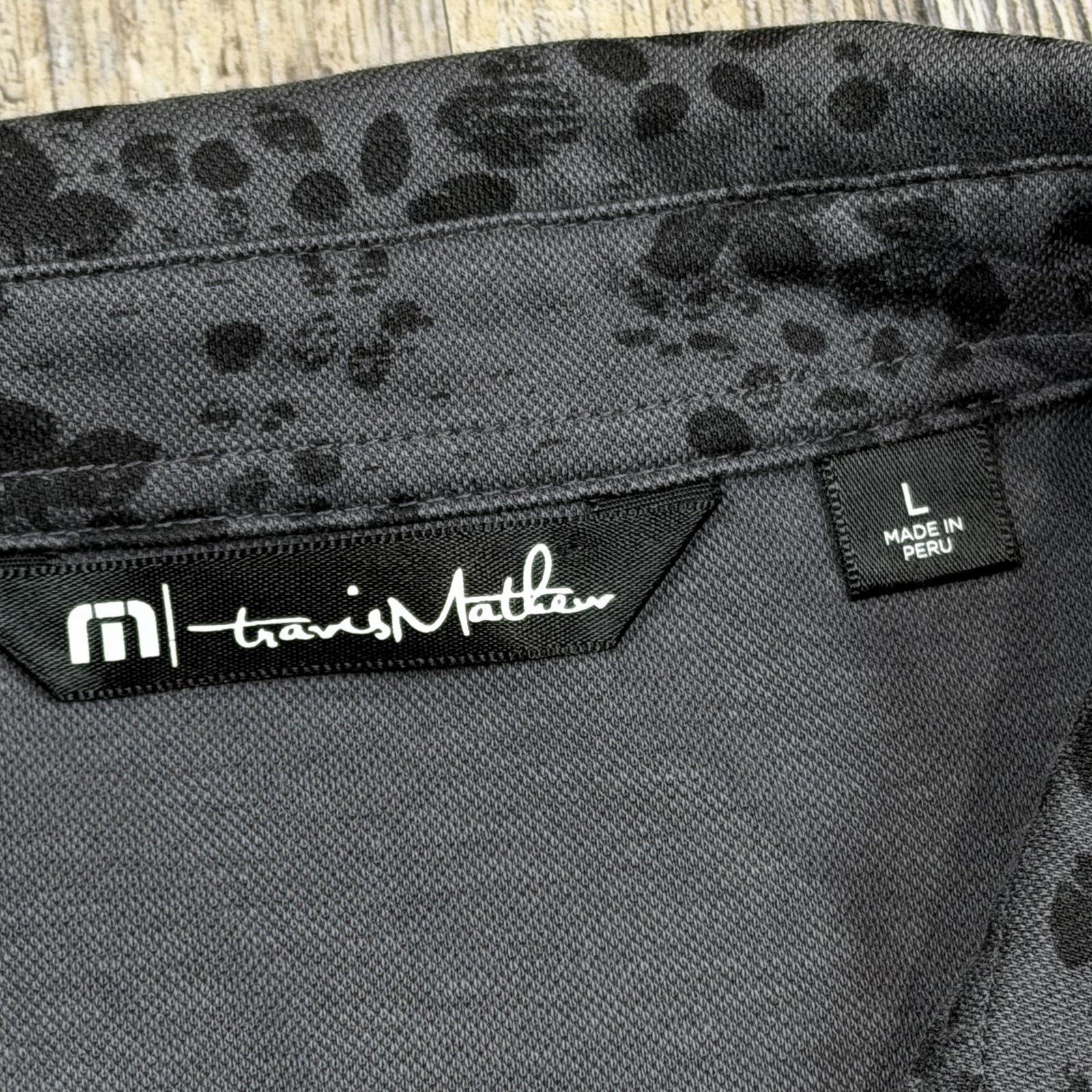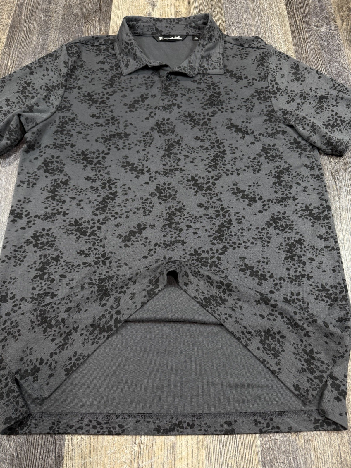 Stylish Travis Mathew "A Little Spice" men’s polo in a gray and black tonal floral pattern. Made with a soft pima-cotton blend and finished with an embroidered TM chest logo. This is style 1MY100, produced October 2022. Comfortable, lightweight, and great for golf or casual wear. Men’s size Large. Details Brand: TravisMathew Model/Style: 1MY100 Size: Large Color: Gray with black floral print Material: 58% Pima Cotton / 42% Polyester Origin: Made in Peru Features Tonal black-on-gray floral pattern Soft pima-cotton comfort fabric Embroidered “TM” logo on chest TravisMathew branded button Breathable stretch feel Easy-care fabric Enhanced 4-way stretch material Wrinkle resistant Excellent Pre-Owned Condition NOTE: Please see all photos for condition as all flaws will be shown throughout the photos! * COLORS MAY BE DARKER OR LIGHTER OR SLIGHTLY DIFFERENT DUE TO MONITOR/PHONE/TABLET SETTINGS. My shipping discount: $3 shipping on each additional item you add to your order!