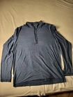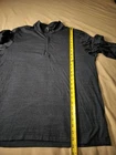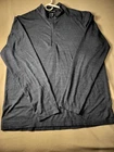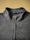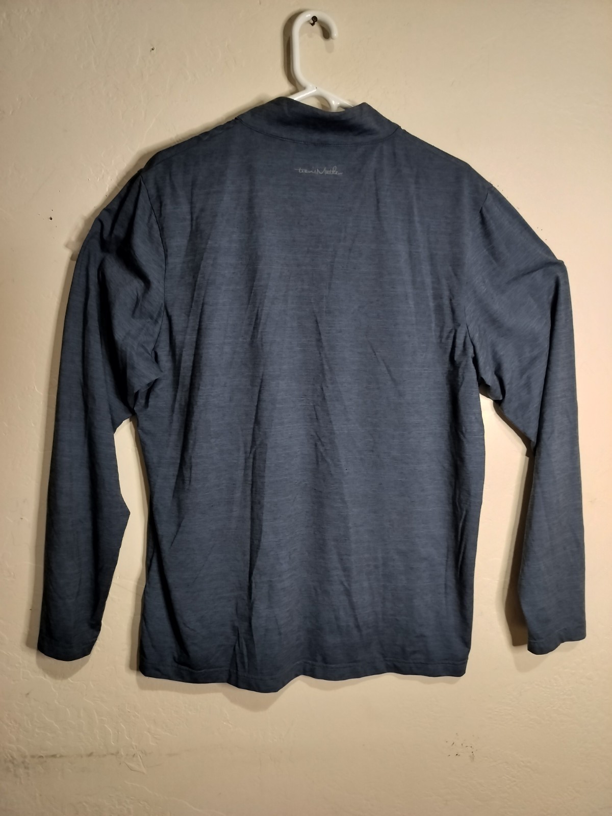 The Travis Mathew Sweatshirt in men's size large is a stylish and performance-driven pullover designed for outdoor activities such as golf, hiking, or running. Made from a blend of polyester, spandex, and cotton, this sweatshirt offers a comfortable and breathable fit with a hint of stretch for added flexibility. The 1/4 zip feature and mock neck neckline provide a stylish and functional design, while the solid gray color and logo accents add a touch of sporty flair. Perfect for all seasons, this lightweight sweatshirt is a versatile and practical choice for active individuals seeking both style and performance in their activewear wardrobe.